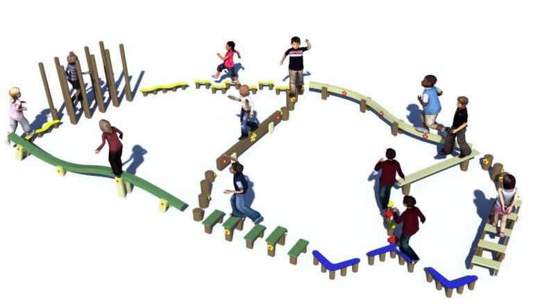 ein aufregender Gleichgewichtsparcours sorgt für die motorischen Fähigkeiten und Selbstvertrauen des Kindes, aber macht vor allem viel Spaß!